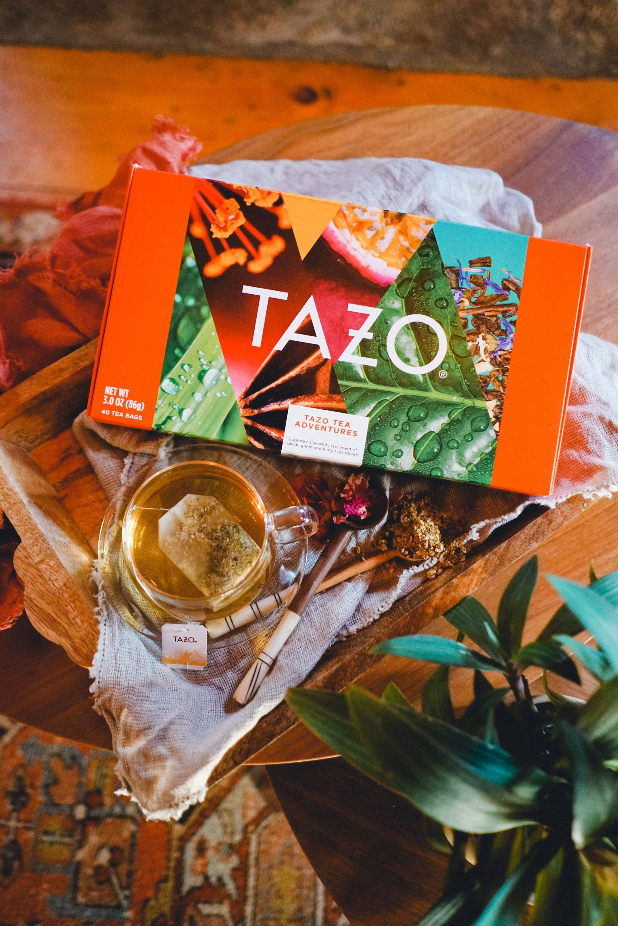 I partnered with Tazo to style and photograph a cozy, fireside scene with their holiday variety pack at The Conscious Cabin.